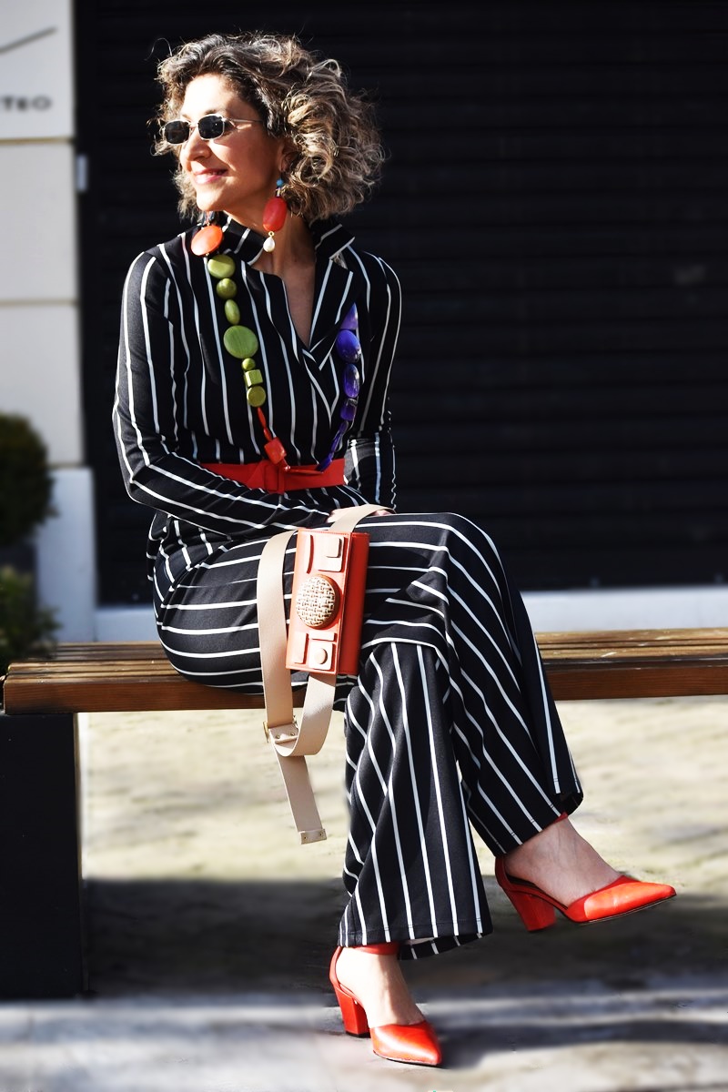 First of all, once I knew my requirements for key fashion trends 2021 during Paris Fashion Week 2021, I started to focus on details. However, I do know that the wide-leg jumpsuit can be just beautiful and stylish like a dress for any formal event. Moreover, I have chosen a well-tailored style that flatters my silhouette and follows my body rather than restricts it. In short, I loved the idea of a floor-sweeping one piece. In this way, my chic jumpsuit in outstanding black and white vertical stripes emphasizes the flowing movement of the garment.