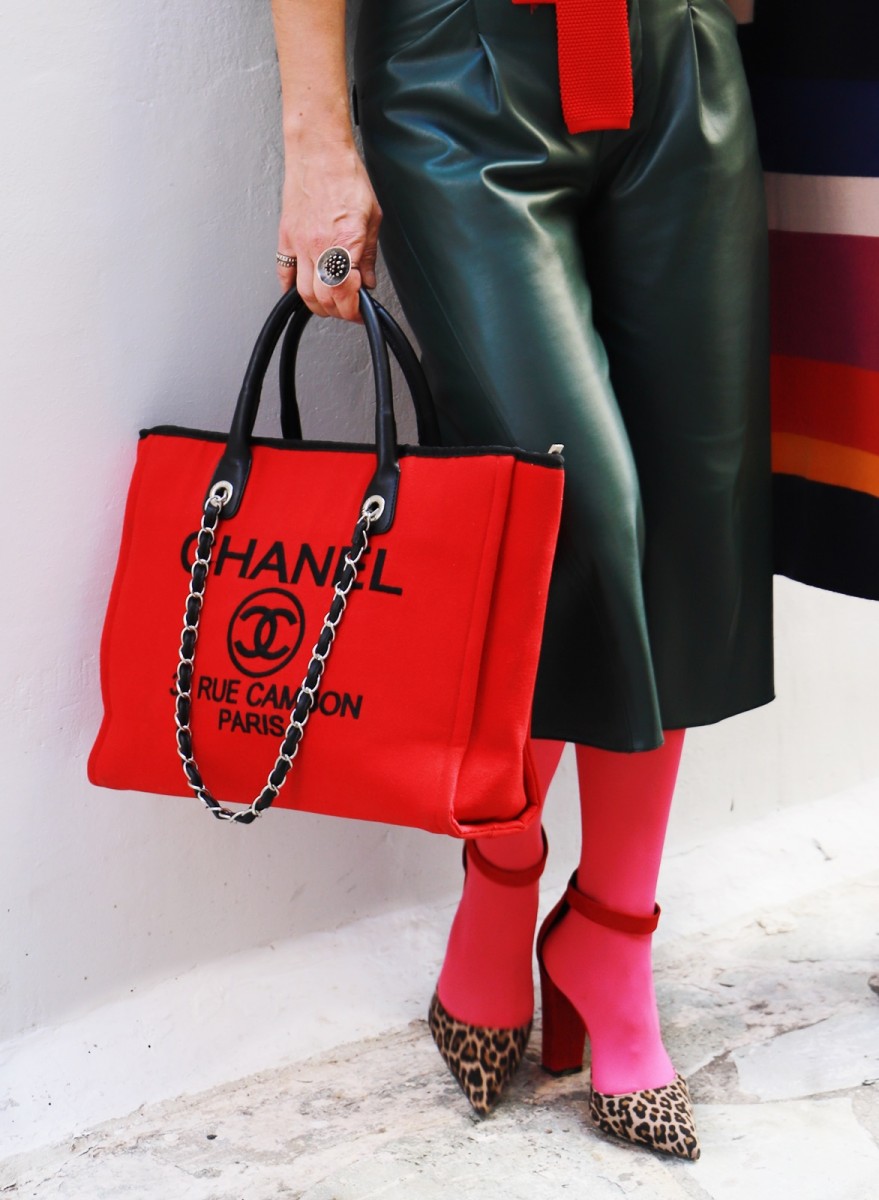 Moreover, the bright red colour of my canvas tote bag creates an individual expression with the leopard pumps and the coloured tights. Show another side of fashion style for my daily way to dress in Autumn/Winter 2020. In fall fashion, colours create my identity. Embrace colour and wear brights. In conclusion, the mixture of accessories is always the best-sophisticated detail for classy clothes in new casual looks.