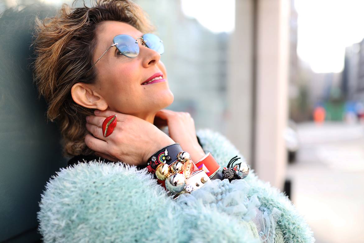 My new eco fur collection in mixture with handmade knitwear is an inspiration for me. As a designer, I love to mix different materials and create a new product. This capsule collection is my love about colour and sustainable design. Every garment has a different colour and texture. Above all, my bags suit perfectly with my new eco fur collection.