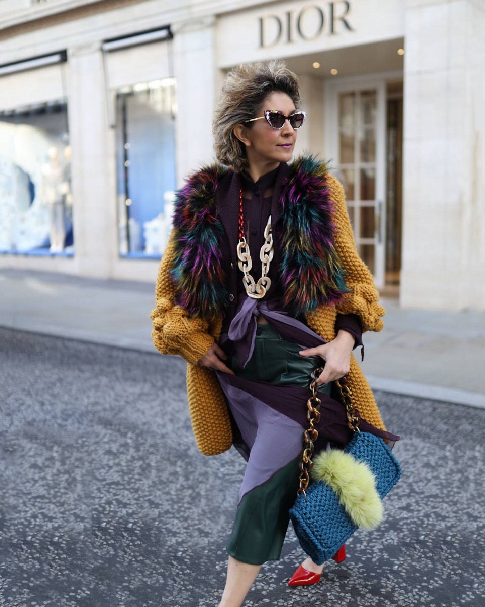 Eco Fur cardigan & knitted bag by @ateliervasiliki