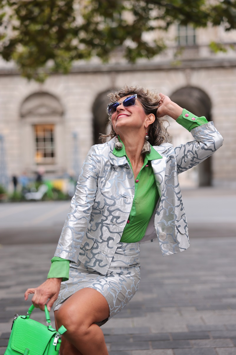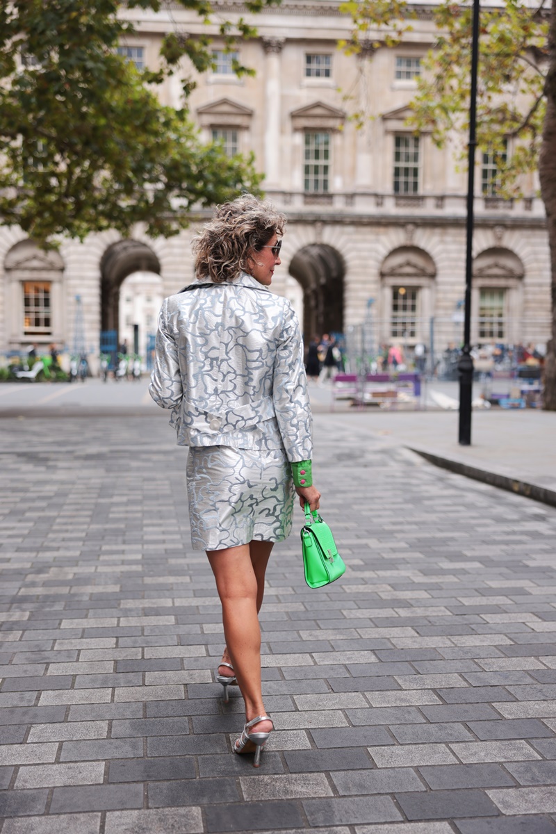 Uncover the Silver Silk Blazer’s unique features that make it a standout this season. With its elegant baby collar, ultra-luxurious buttons, and a chic wide belt at the back, this retro-inspired jacket is a versatile addition to any sophisticated London outfit. Whether it’s the shiny brocade or the luxurious silk, this jacket is a fashion masterpiece that offers endless style possibilities.