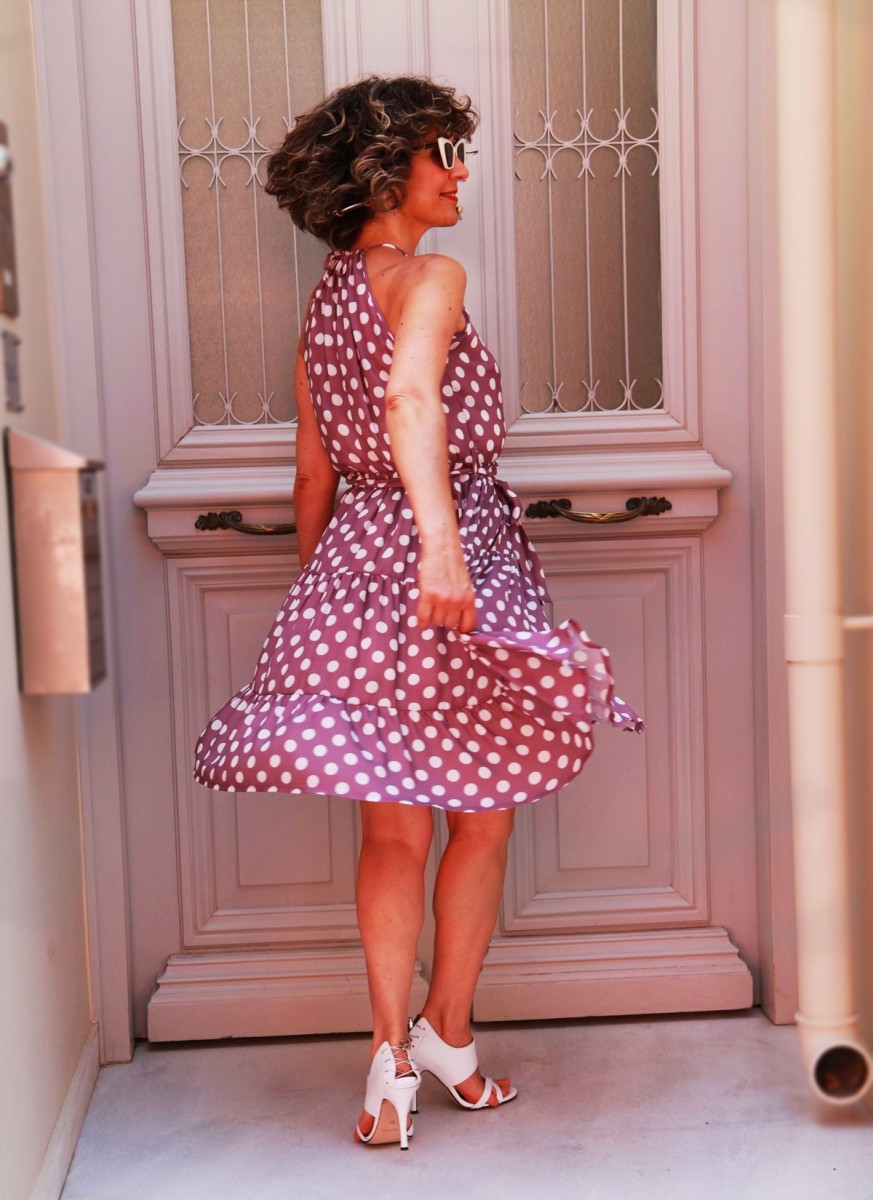 Polka Dot Dress COMKI / Sunglasses Ofthalmos. gr / High Heels SO.KOIRA, Instagram: @ so. koira / Fashion Earrings “Just One” limited edition accessory collection.