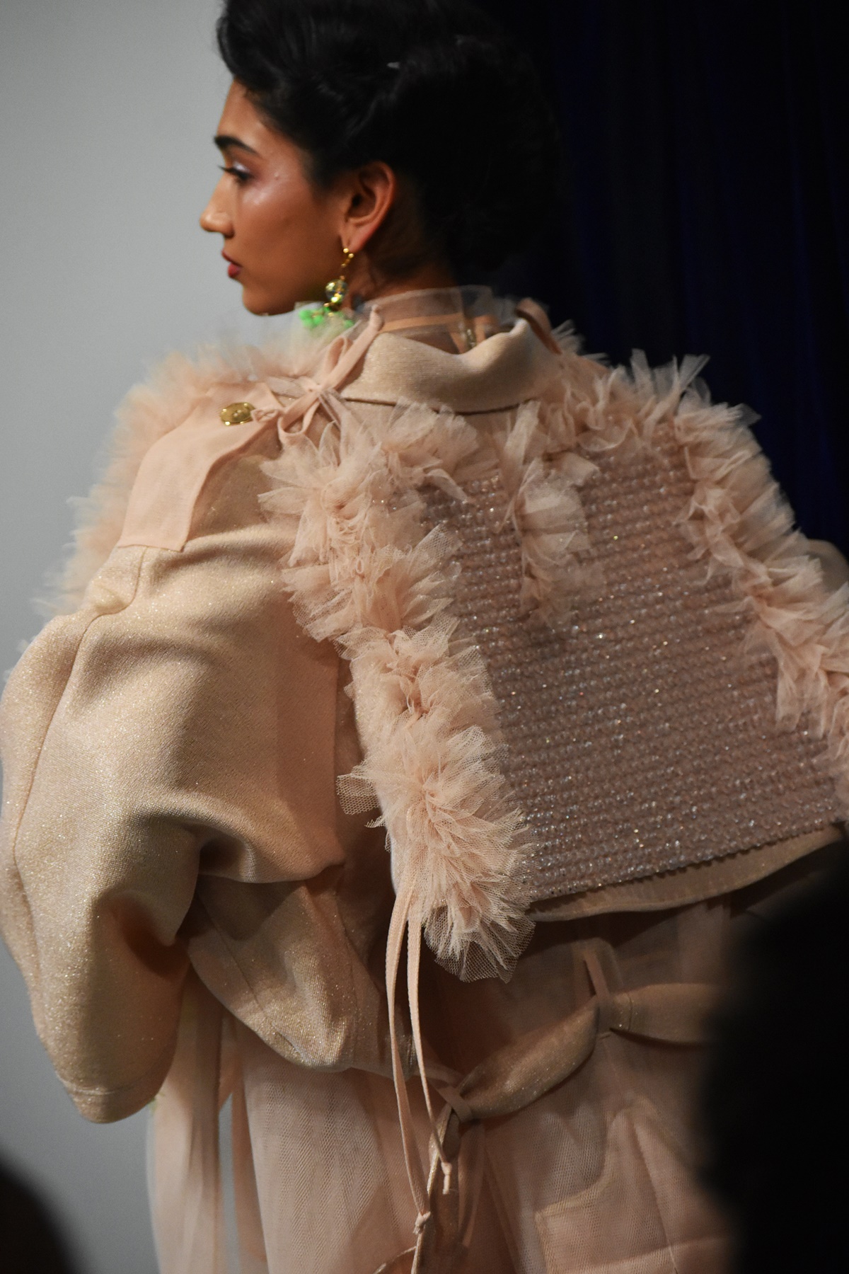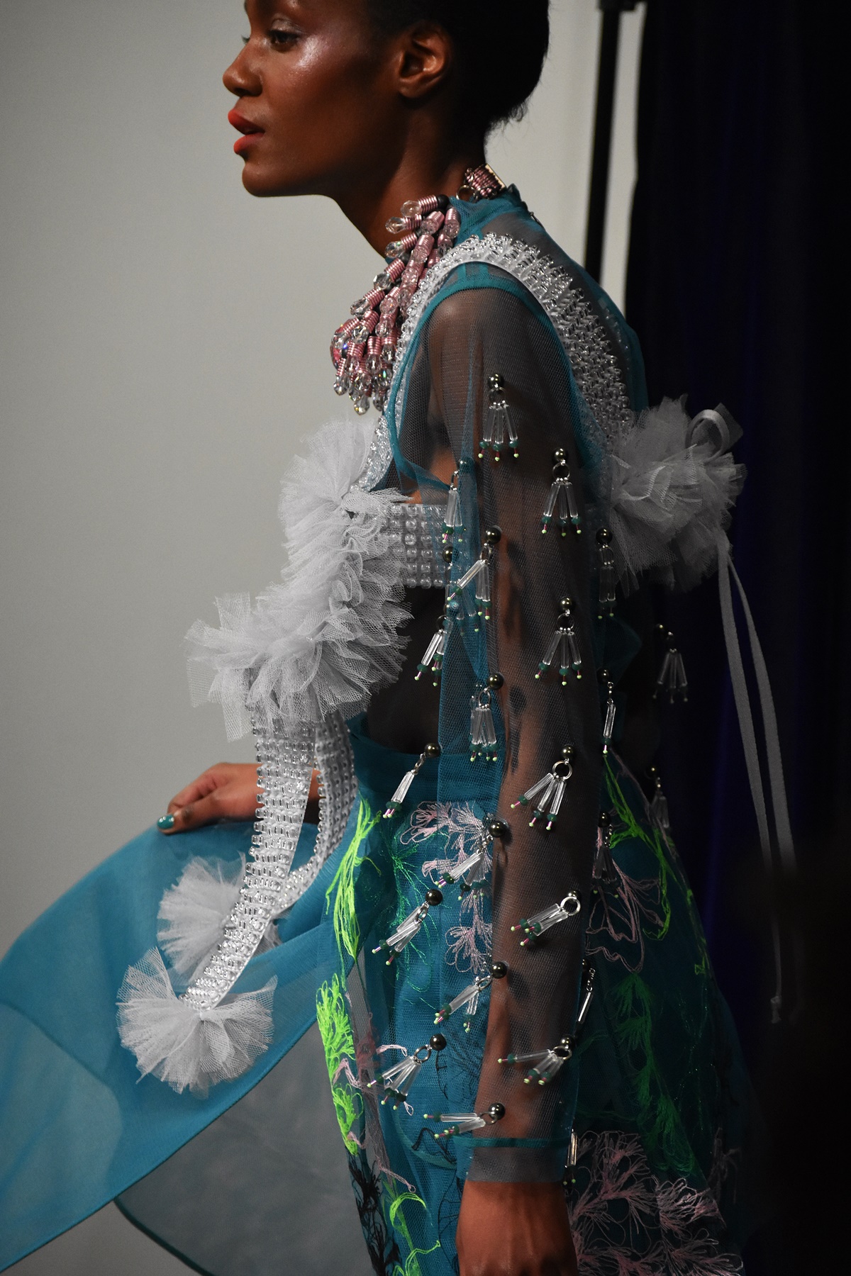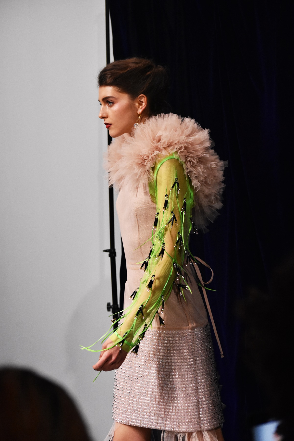 A lightness and an innovative view of design captured my attention to attending the fashion show of LONGSHAW WARD by On/Off during London Fashion Week February 2019. It is about precious details in a fashion show that rewrites materials and shaping.