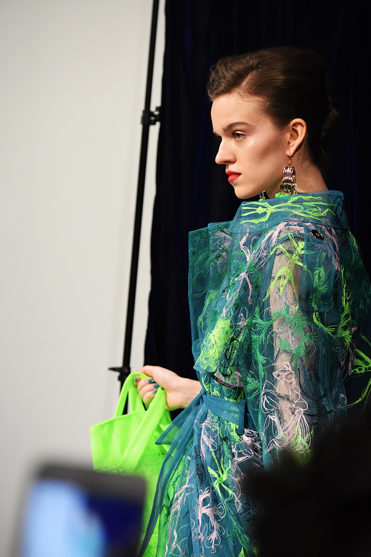 In fashion, emergent designers renew the rules in shapes, texture, and color. Luxury is a mixture of optional ways to wear a garment and On/Off is an innovative talent support platform that offers a voice to new talents during London Fashion Week.