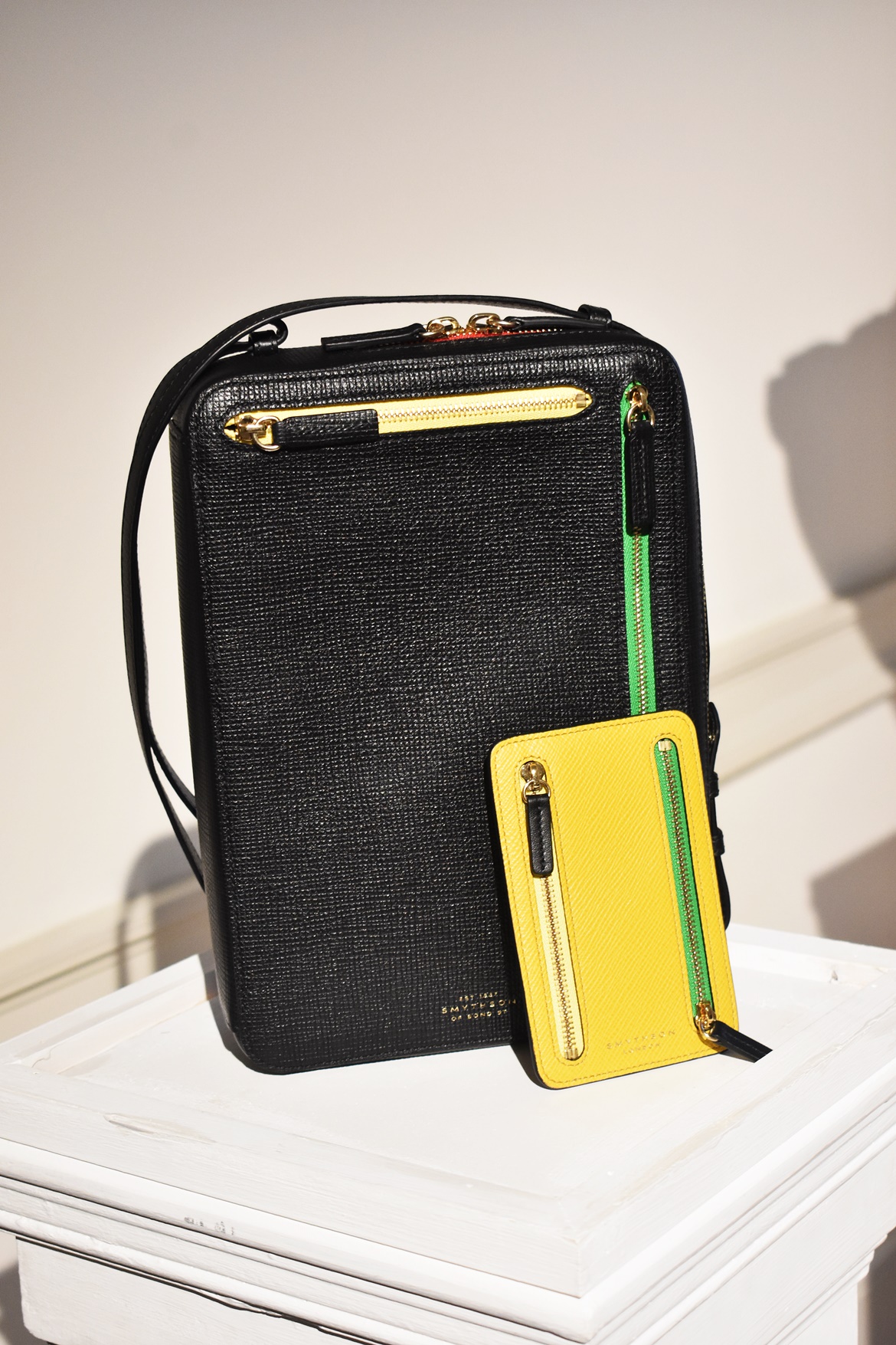 Each piece has a story to tell. That was the feeling I had looking at Scottish cashmere scarves, wallets to new folio shapes with Multi-zip options, embellished clutches, and fringed leather pouches. The warm neutrals and greens create a relaxed style. While the feather, as a symbol of Smythson’s century-old Featherweight paper inspires colors on triangular silk foulards, bound diaries, and hand-painted jewelry boxes. Colors become vibrant and transform accessories to new fashion ideas. Why not? Be chic and flexible. That is Smythson’s obsessive craft with quirky sophistication.
