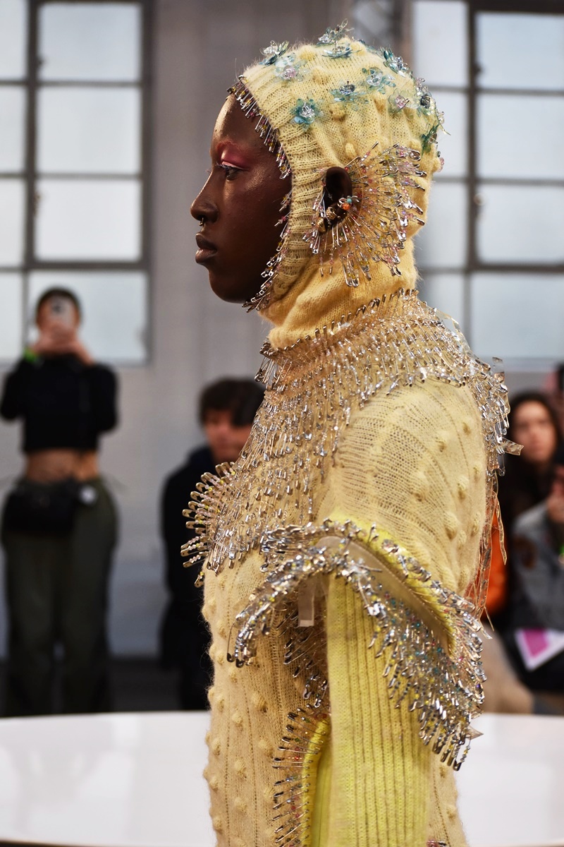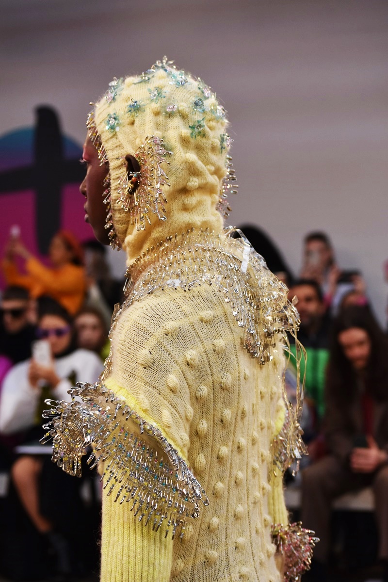 Likewise, an innovative collaboration of the Slovac Fashion Council with Fashion Scout presented the young Slovak fashion brand MADbyMAD. Using bioplastic as a leather replacement, Mata Durikovic created bioplastic crystal leather with 3D embroidery. An explosive expression of recycled Swarovsly crystals in a mixture with zero-waste crochet techniques pushed the limits of sustainability in luxury fashion.