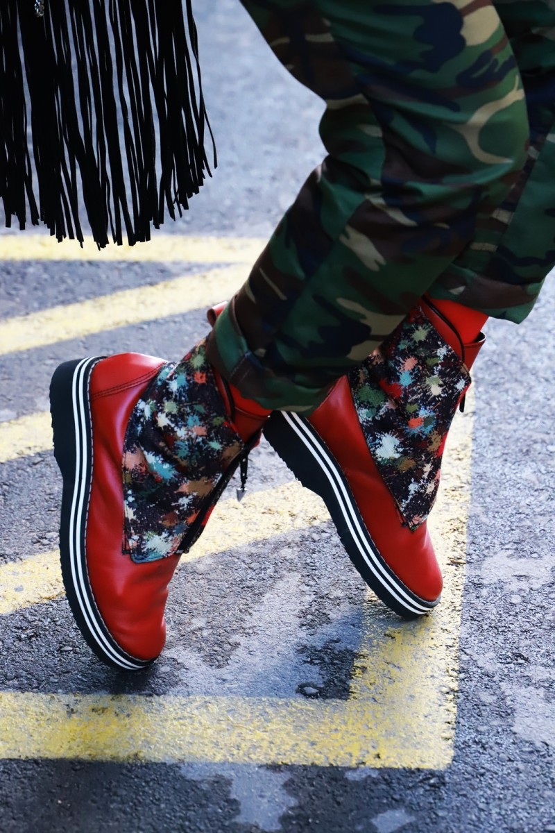 I love the look of high heels pumps, but with my casualwear outfit, I recently got a custom made Vibram sole boots by N Modisto Handcrafted shoes, and they became one of the must-have items in my wardrobe. I even wore these for miles while walking around London during London Fashion Week, and I am excited with their innovative design. Every season new ankle boots trends make their way into the fashion lovers street style. Right now, It is the mixture of high-quality leather with a waterproof print fabric, high-end Vibram soles, and zippers that seem to create the ankle boots style my wardrobe needs now.